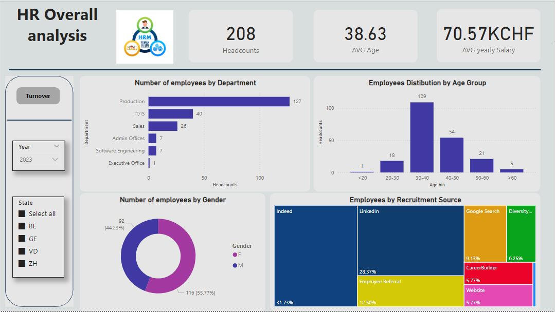 This analysis focuses on HR data for the year 2023. To support this, I created two visualization reports:1. HR Overall Analysis
